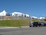 The main reason for out attending was so Stu could see his retiree friends, Bill (mentioned yesterday) and Freddie, who plays in the bluegrass band, The Seldom Scene. When we arrived on Saturday afternoon, it was just in time to catch the band and meet up briefly with Freddie. When they were done we managed to meet up with Bill & Cindy (remember that proverbial needle in a haystack, thank goodness for cell phones) and headed off for drinks & something to eat. Here is a pic from Sunday after the festival ended. From left to right, Stu, Freddie & Bill.